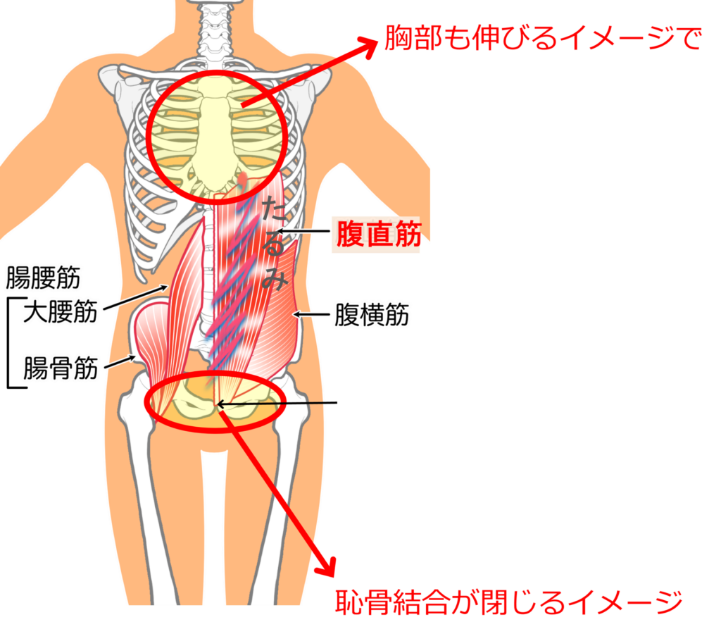 なぜかと言いますと、図と合わせてご覧いただきたいのですが、腹直筋は、恥骨稜